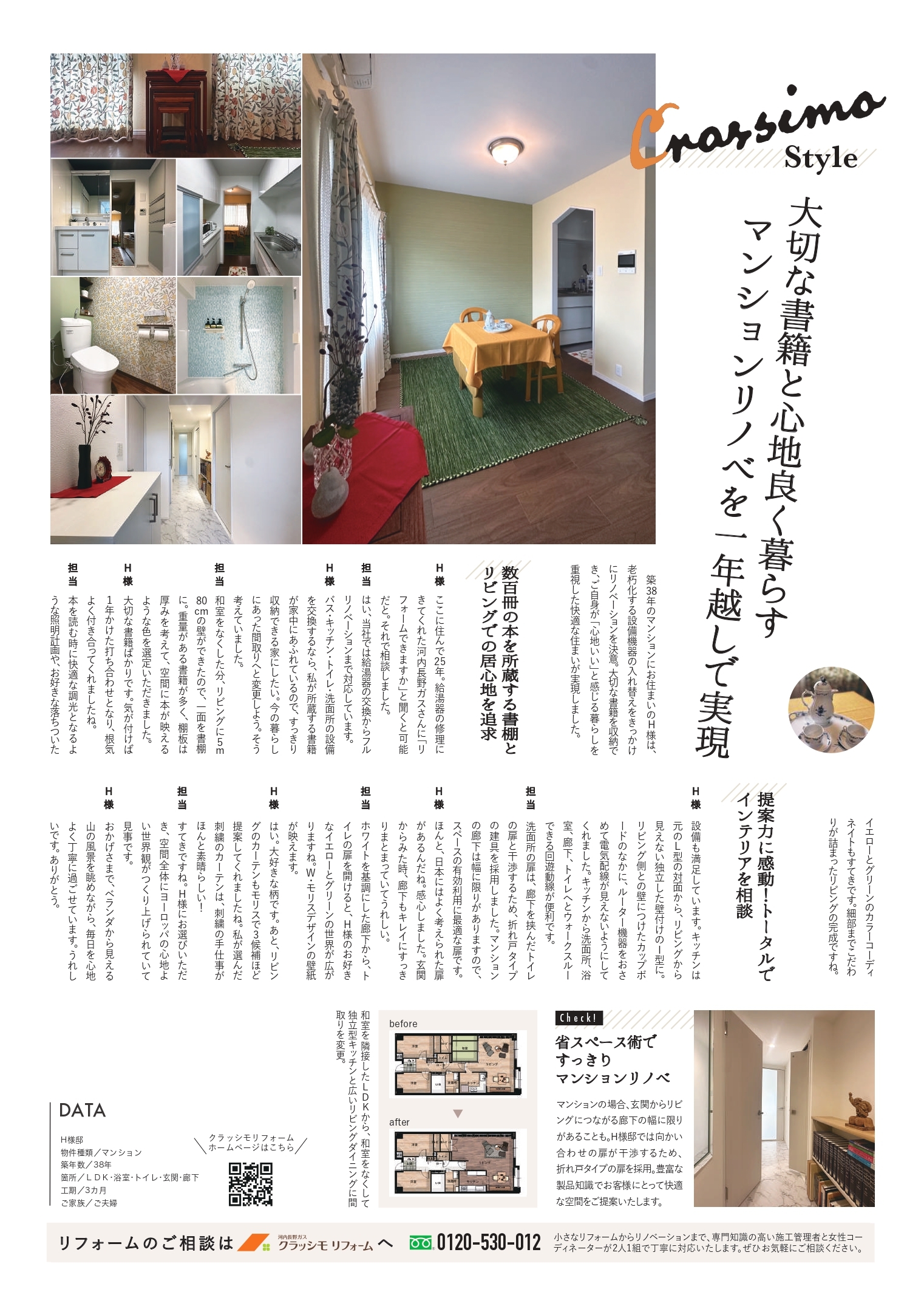 リフォーム事例はH様邸の「大切な書籍と心地良く暮らす マンションリノベを一年越しで実現」をご紹介!ほかにも、新春リフォームフェア、ショールームからのお知らせなど情報が盛りだくさん。お店紹介コーナーは「Bolero(ボレロ)」様です。ぜひチェックしてくださいね!!