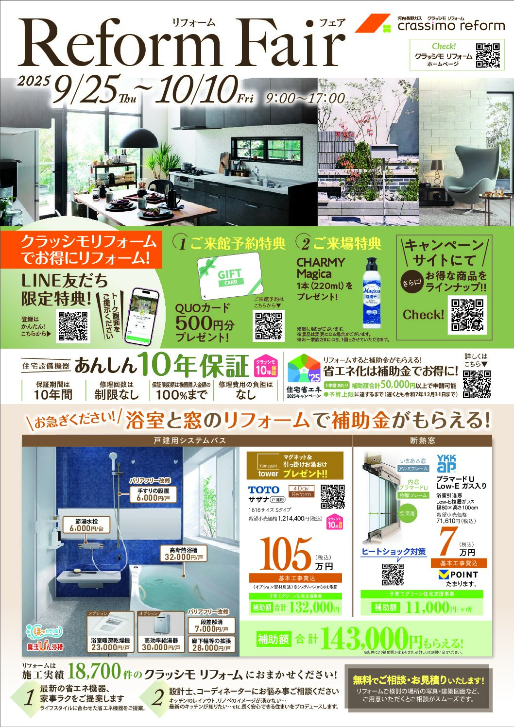 9/25(木)~10/10(金)まで、秋のリフォームフェアを開催いたします。
