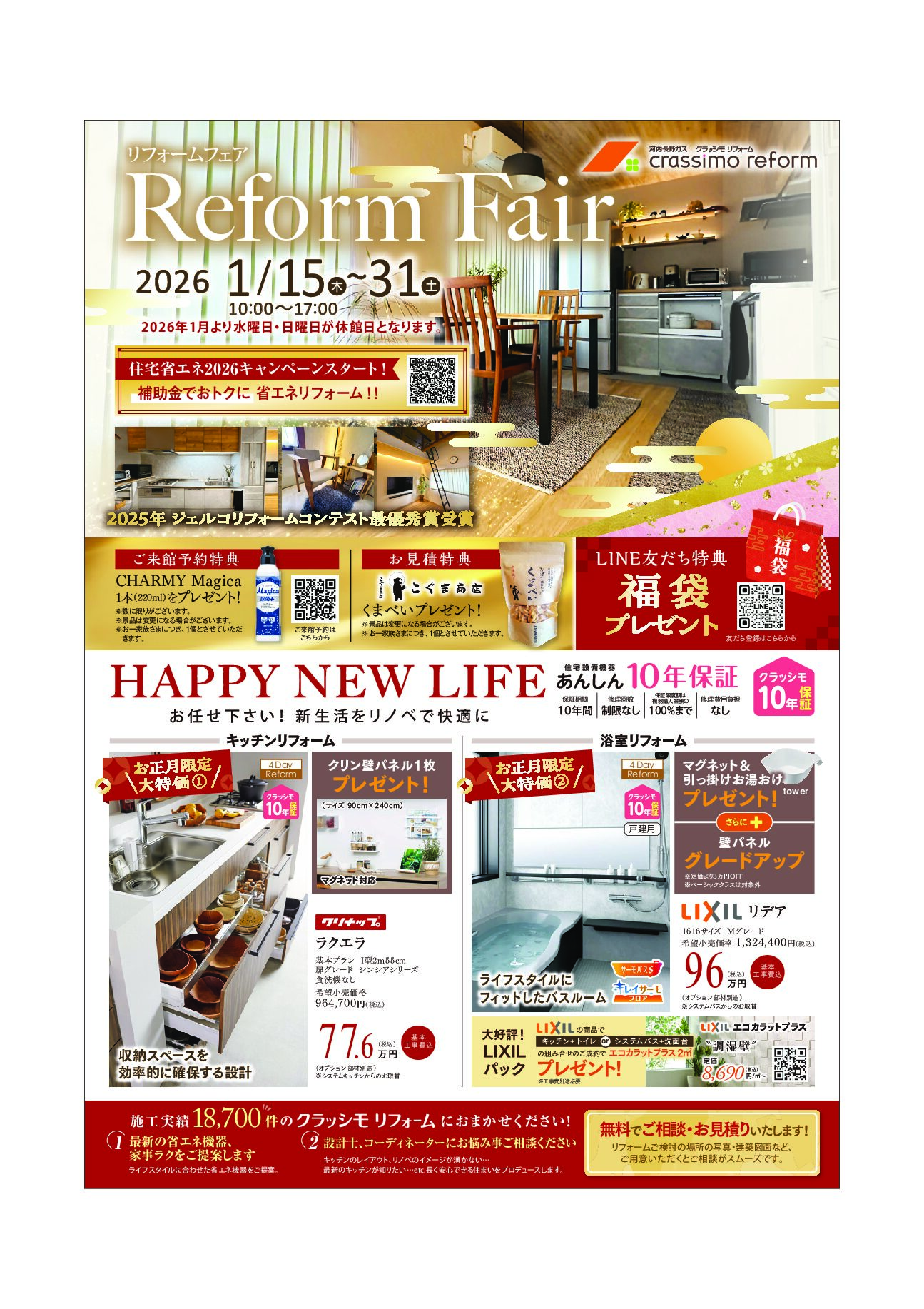 1/15(木)~1/31(土)まで、新春リフォームフェアを開催いたします。