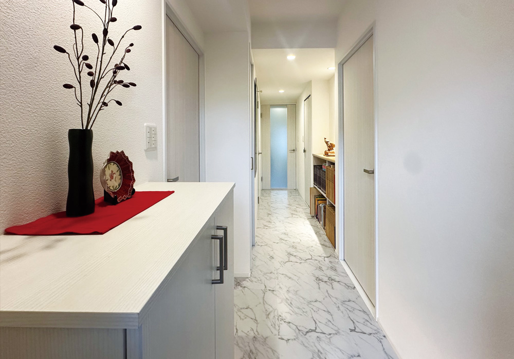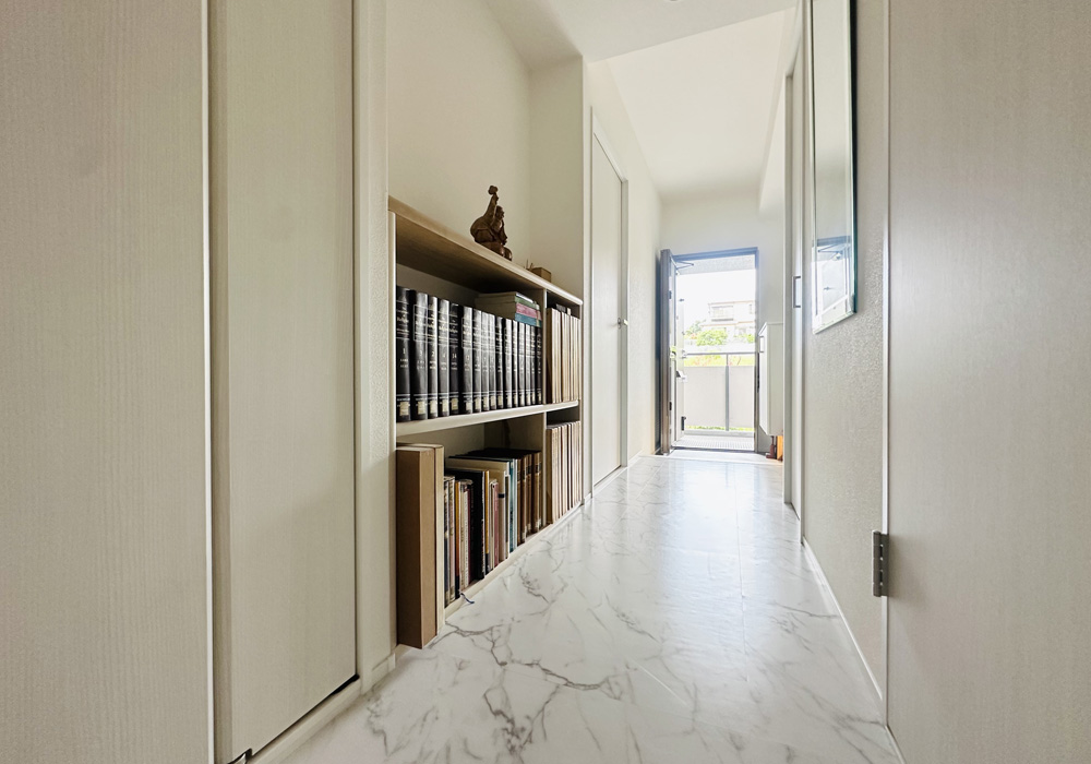 築38年のマンションにお住まいのH様は、老朽化する設備機器の入れ替えをきっかけにリノベーションを決意。大切な書籍を収納でき、ご自身が「心地いい」と感じる暮らしを重視した快適な住まいが実現しました。